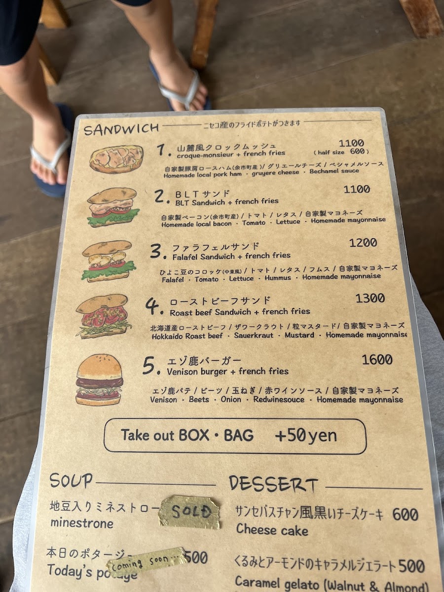 Niseko Sanroku Parlor specializes in wholesome sandwiches that cater to both meat lovers and vegetarians alike. Popular choices include the satisfying BLT, known for its perfectly crispy bacon and freshly toasted bread, giving you a crunchy, savory experience that will leave you smiling. If you’re leaning towards a vegetarian option, don’t miss their falafel sandwich, which has been praised for its delicious flavor and generous use of freshly baked bread. The café also offers refreshing drinks like homemade ginger beer and expertly brewed coffee, enhancing your meal with invigorating flavors.